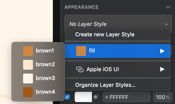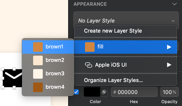 APPEARANCE の No Layer Style をぽち。そして目当ての色をぽち。